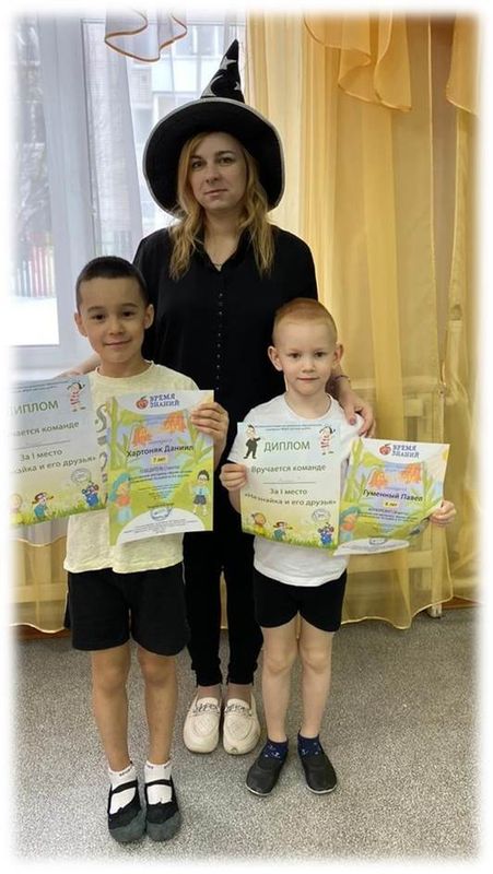Дипломы воспитанников подготовительной группы занявшие I место во всероссийской викторине "Время знаний"